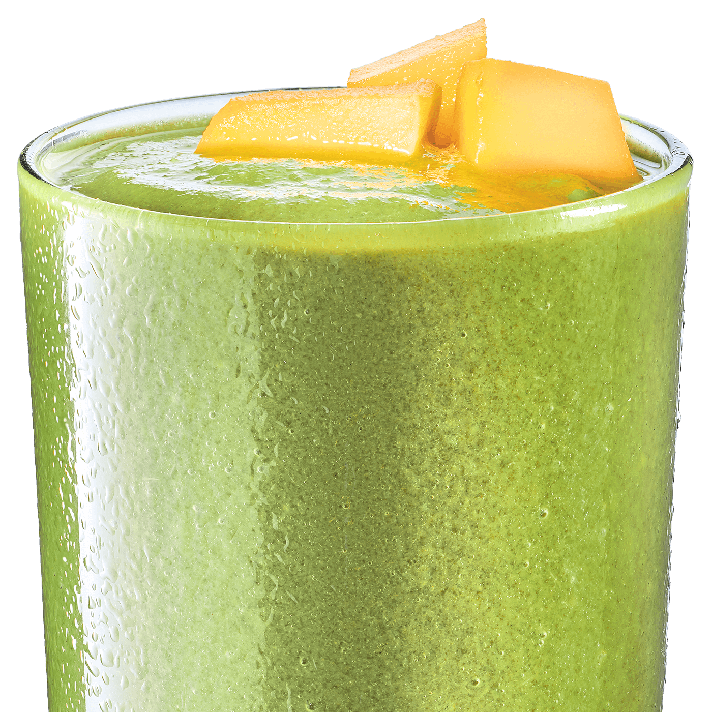 Fresh orange juice with tropical mango, pineapple, leafy kale, and 8g of all-natural protein — rounded with monk…