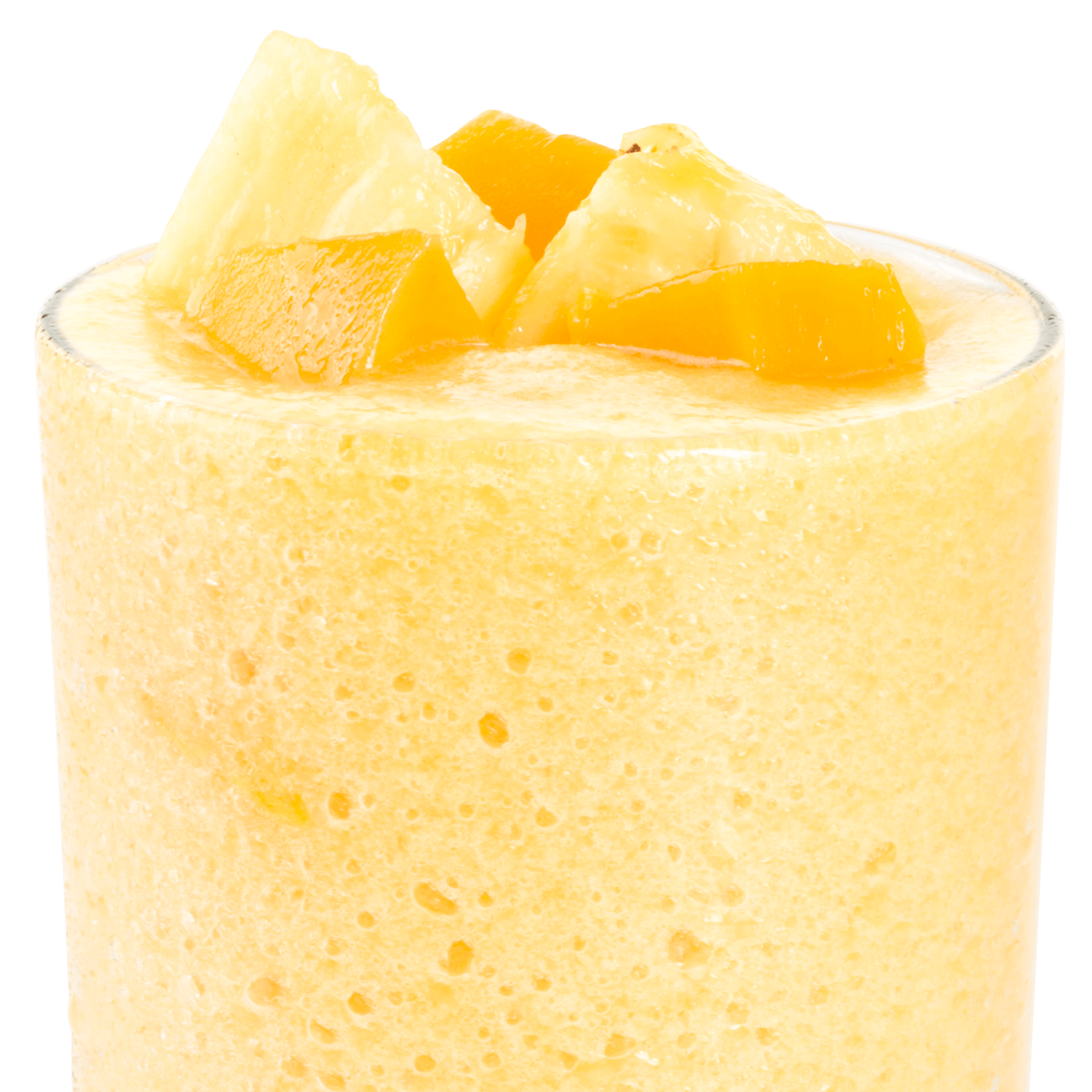 Fresh orange juice with tropical mango, pineapple, leafy kale, and 8g of all-natural protein — rounded with monk…